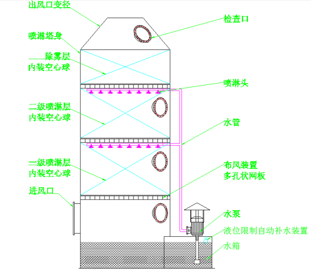 酸霧噴淋塔又稱酸霧凈化塔、酸性氣體洗滌塔、酸霧吸收塔、廢氣凈化塔,能夠去除空氣中有害氣體。